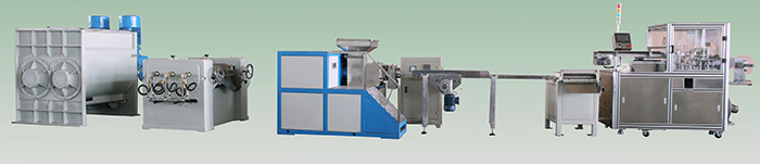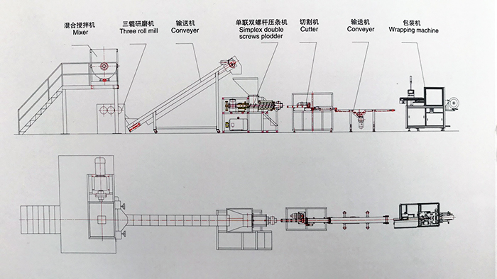 1、Mixer or Sigmar Mixer(Kneader) 2、Three roll mill(Option) 3、Conveyer 4、Simplex double screws plodder